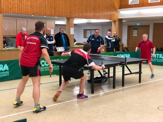 Bei den Ü 50 Oldies waren ebenfalls 4 Mannschaften zum Leistungstest erschienen: TSV Jühnde, TTC Hattorf, SV Rot-Weiß Hörden und TTC Lonau. Abschließend kam es zum showdown der ungeschlagenen Mannschaften aus Jühnde (Elend, Ramszweig, Gerth) gegen Hattorf (Tront, Barke, Pfeiffer). Nach einem ausgeglichenen Beginn war das Doppel vorentscheidend. Hier setzte sich die Jühnder Paarung Gerth/Ramszweig gegen Pfeiffer/Tront zum 3:1 Zwischenstand durch. Den entscheidenden 4. Punkt für Jühnde holte dann „Schraube“ Gerth gegen Roman Tront, nachdem vorher der bisher ungeschlagene Henning Ramszweig gegen den Hattorfer Barke den Kürzeren gezogen hatte.